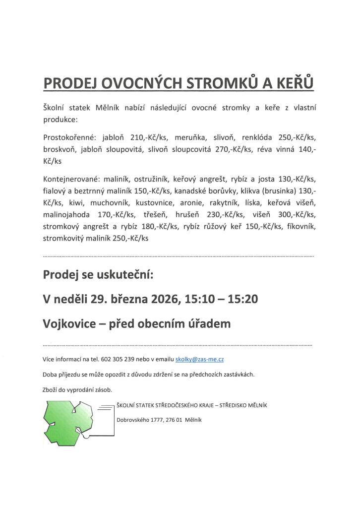od 15:10 do 15:20 hodin u obecního úřadu ve Vojkovicích, více v příloze: